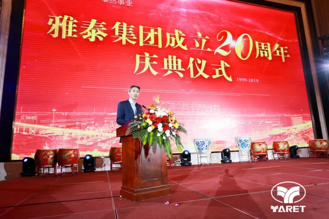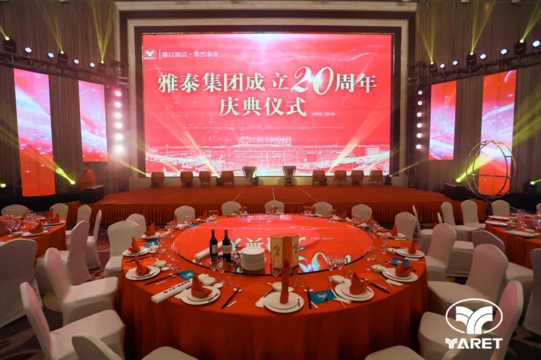 2019年12月18日17時(shí)18分,雅泰集團(tuán)二十周年慶典儀式及晚宴于江蘇省宿遷市恒力國際大酒店隆重舉行,千余人歡聚一堂,共同祝福雅泰二十歲生日快樂!